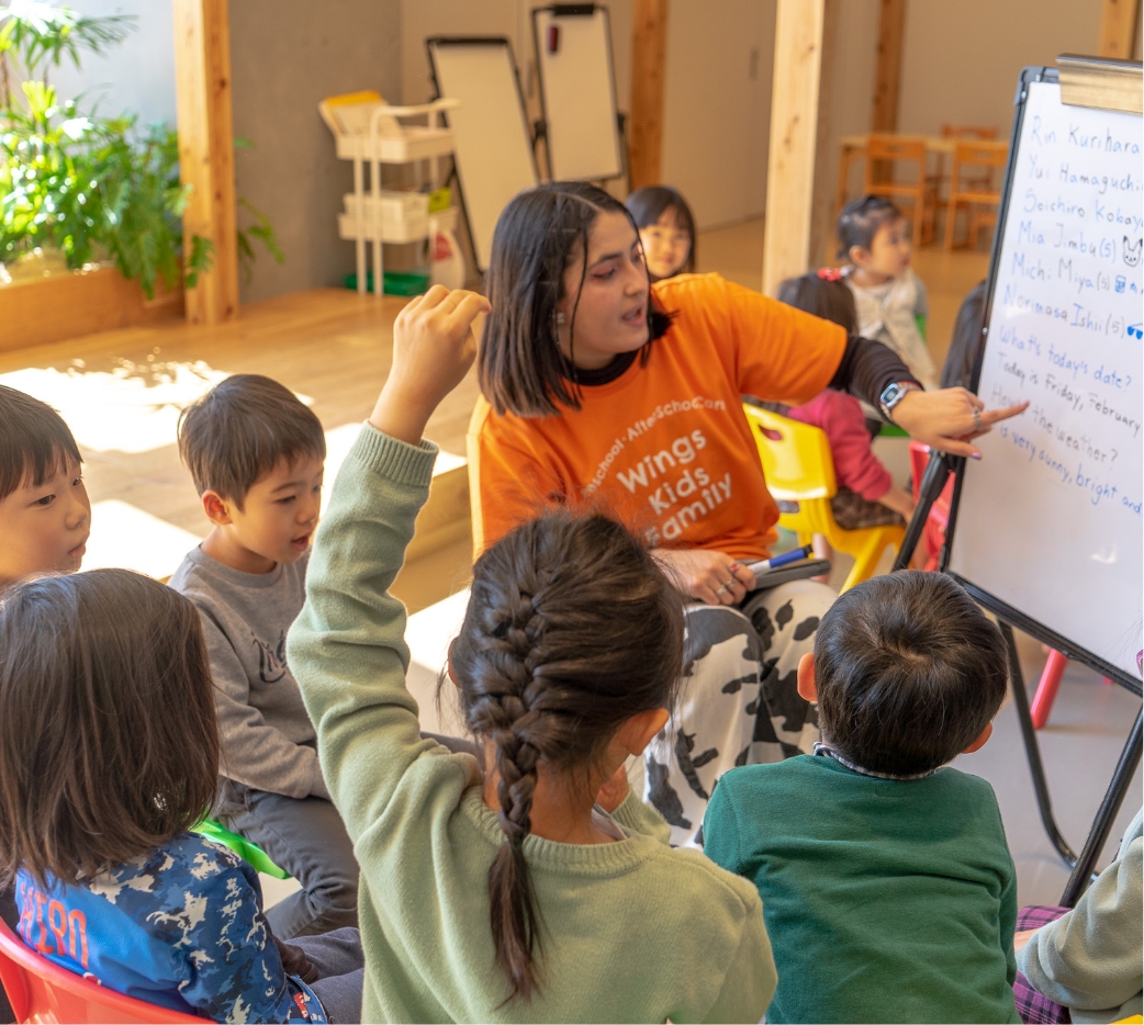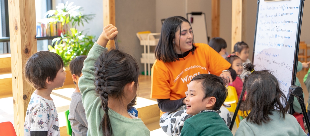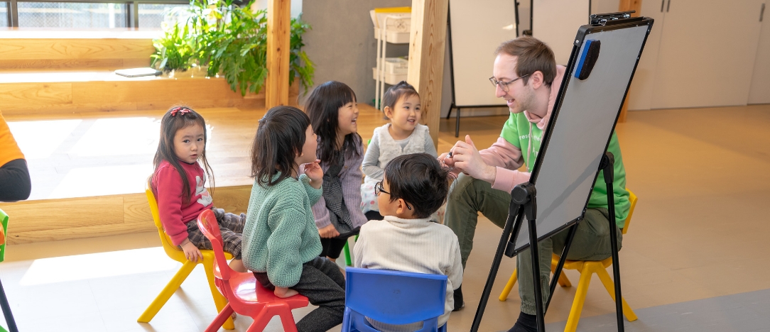 2022年12月に拡大移転。東急田園都市線池尻大橋駅南口から徒歩30秒の立地に、専用エレベーター、24時間高機能換気設備の最新の設備に加え、日当たりの良い300平米の広々としたスペースで、こども達が楽しくバイリンガルに育つ環境を提供します。