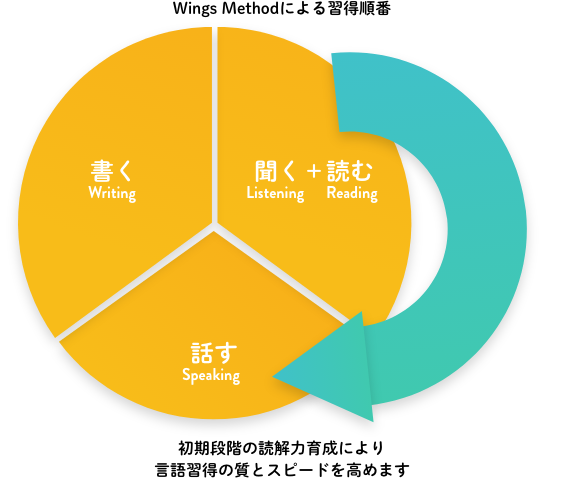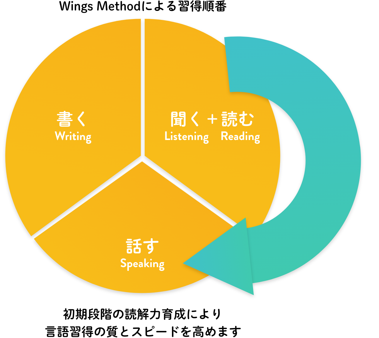 Wings Global Homeに通うこども達の圧倒的な英語コミュニケーション力は、まさにこのWings Methodを中心につくりあげられるのです。