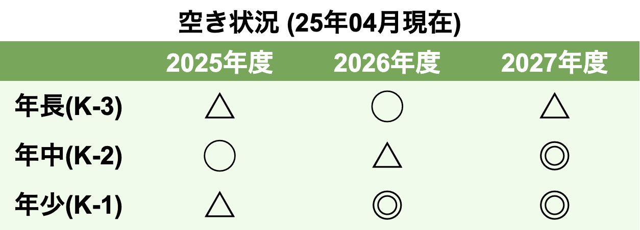 池尻大橋校Bi.-Kinderの空き状況は以下のとおりです。(2025年04月現在)