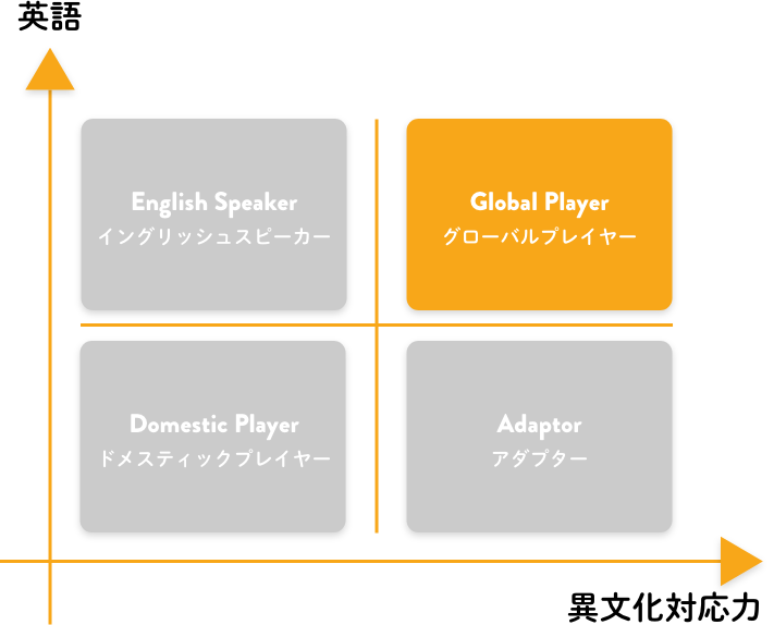 英語コミュニケーション力は英語と異文化対応力で構成されます。 英語が話せても、異なる文化によって違う「コミュニケーションスタイル」 に適応できなければ、効果的なコミュニケーションができていることにはなりません。 また異文化対応力があっても、英語ができなければ「アダプター」になってしまいます。 Wings Global Homeでは、世界に羽ばたく「グローバルプレーヤー」になるためには、 どちらも重要で欠かせないスキルと考えています。(図1参照)