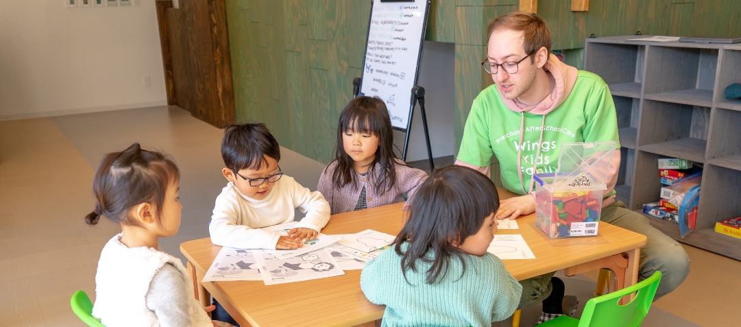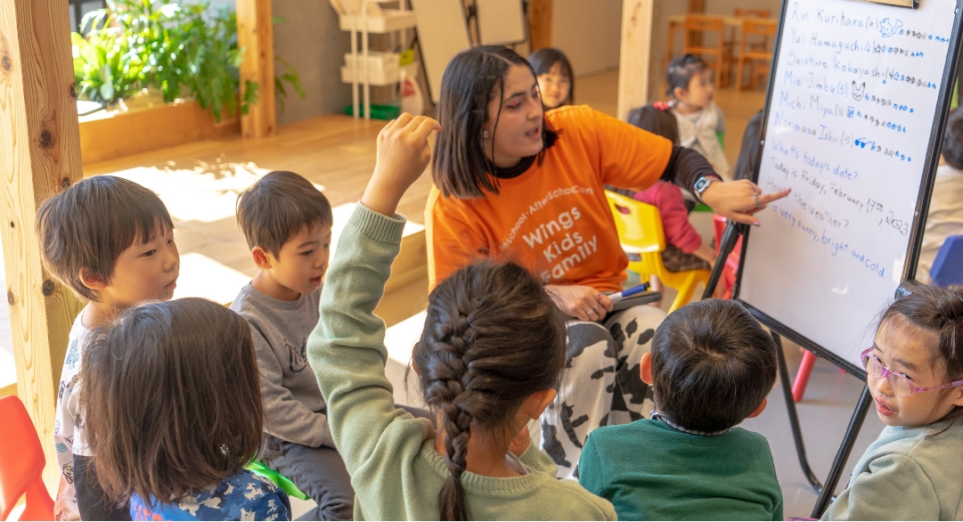 Wings Global Homeでは、まず社会のルールを守る、そして人とモノを譲り合う、人の話しを聞くなどの基本姿勢を培い、その後社会の一員として自分ができること、そして社会の巻き込み方という意味での社会性まで踏み込んで考えています。 例えば、SDGsに代表されるように、いま世界中で起きている環境、差別、貧困、人権等のさまざまな社会問題は一人ひとりの「自分事化」が必要であり、多くの課題は世界の人々との協業が必要です。国籍豊かな先生達とこのような問題を共有することによっても、自らが「グローバルシチズン」であるという意識を芽生えさせることに繋がっています。 また、Wings Global Homeでは日本社会特有の年齢別に分けた対応をせず、あえて違う年齢のこども達を混合させるとこにより、発育の差がある中での人間関係の構築を促進しています。例えば、カリキュラムの一部であるジョブチャート(係分担)では、特に年上と年下のバディを意図的に組ませ、年上が年下の子の活動をサポートし、誰かに貢献する喜びから社会性を学びます。